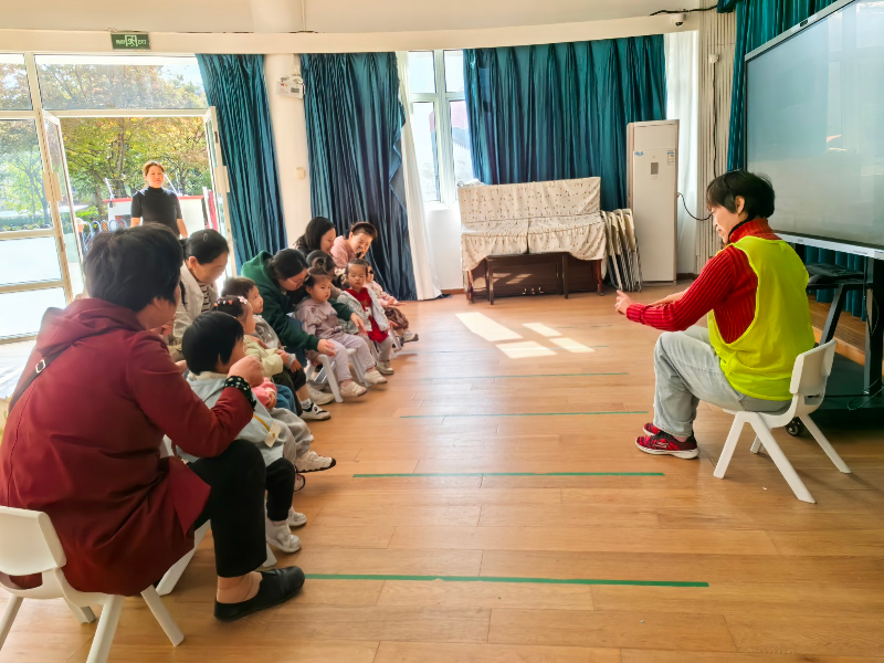 10:00,集中性亲子游戏“头发肩膀膝盖脚”如期上演。在欢快的音乐中,毛梅老师带领家长和宝宝们跟着节奏拍打身体部位,宝宝们认真模仿、积极互动,在律动中认识身体器官,感受音乐魅力。活动现场欢声笑语不断,亲子间的温馨互动暖意融融。