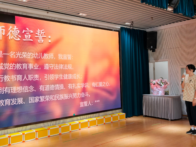 9月10日教师节当日,青浦红珊瑚幼儿园开展“以法为基,以德立心”教师节师德师风主题活动,全体教师参与。