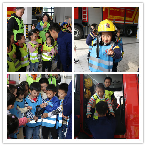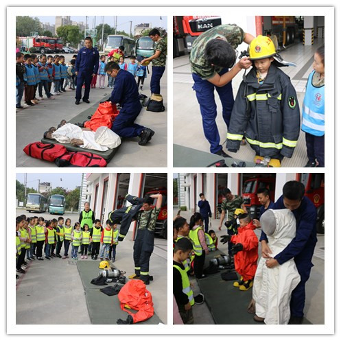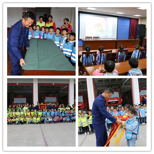 活动分为四个部分:首先是第一个环节:“神秘的消防车——消防车大揭秘”,盈浦消防救援站的消防员分别向两个大班介绍了消防员的三种服装、消防车上的各种救援装备,还请孩子们感受一下穿消防服、登上消防车的体验。第二个环节是“消防员叔叔的生活——参观消防员寝室”,全体师生家长们来到消防队寝室,看一位消防员示范折叠“豆腐干”被子,参观了干净整洁的环境。第三个环节“消防安全记心中——消防教育小视频”在会议室进行,消防员运用多媒体设备播放了消防安全教育的动画片视频,向幼儿宣传关于安全用电、安全使用燃气、火警电话等小常识。最后一个环节“我们都是好朋友——赠送锦旗、与消防员叔叔合影”,由幼儿代表向消防队赠送锦旗,全体师生家长与消防队的官兵共同合影,为本次参观活动画下了一个圆满的句号。