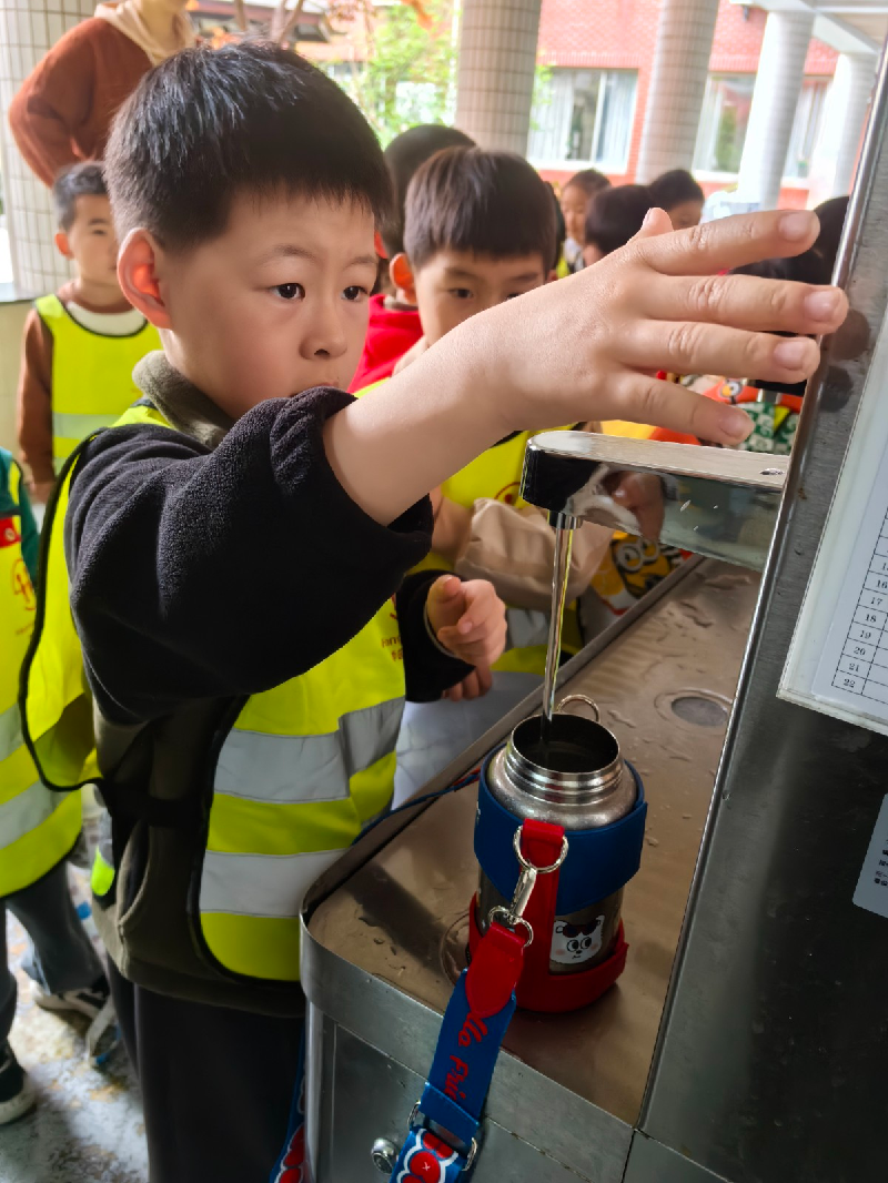 在老师的带领下,孩子们首先观摩了小学的升旗仪式。他们认真观看哥哥姐姐的站姿和行礼动作,尝试模仿,感受校园的仪式感。随后,孩子们开始参观校园,学习使用饮水机接水,认识小学的厕所位置,并依次走进舞蹈室、美工室、自然教室等专用教室,了解不同教室的功能和使用规则。